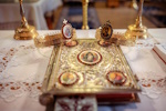 Pictura, efectuată în ulei, a fost de-a lungul timpului, de mai multe ori restaurată: în 1911 de către pictorul C.H. Constantinescu; în 1950 de către soţii Florica şi Ion Târlan, în timpul arhipăstoririi P.S. Antim Anghelescu, prin grija Pr. Paroh Vasile Muşat şi în anul 1982, de pictorii Liliana şi Jenica Enache, prin osteneala Pr. Paroh Dedu Constantin şi cu sprijinul Consiliului Local şi al enoriaşilor.